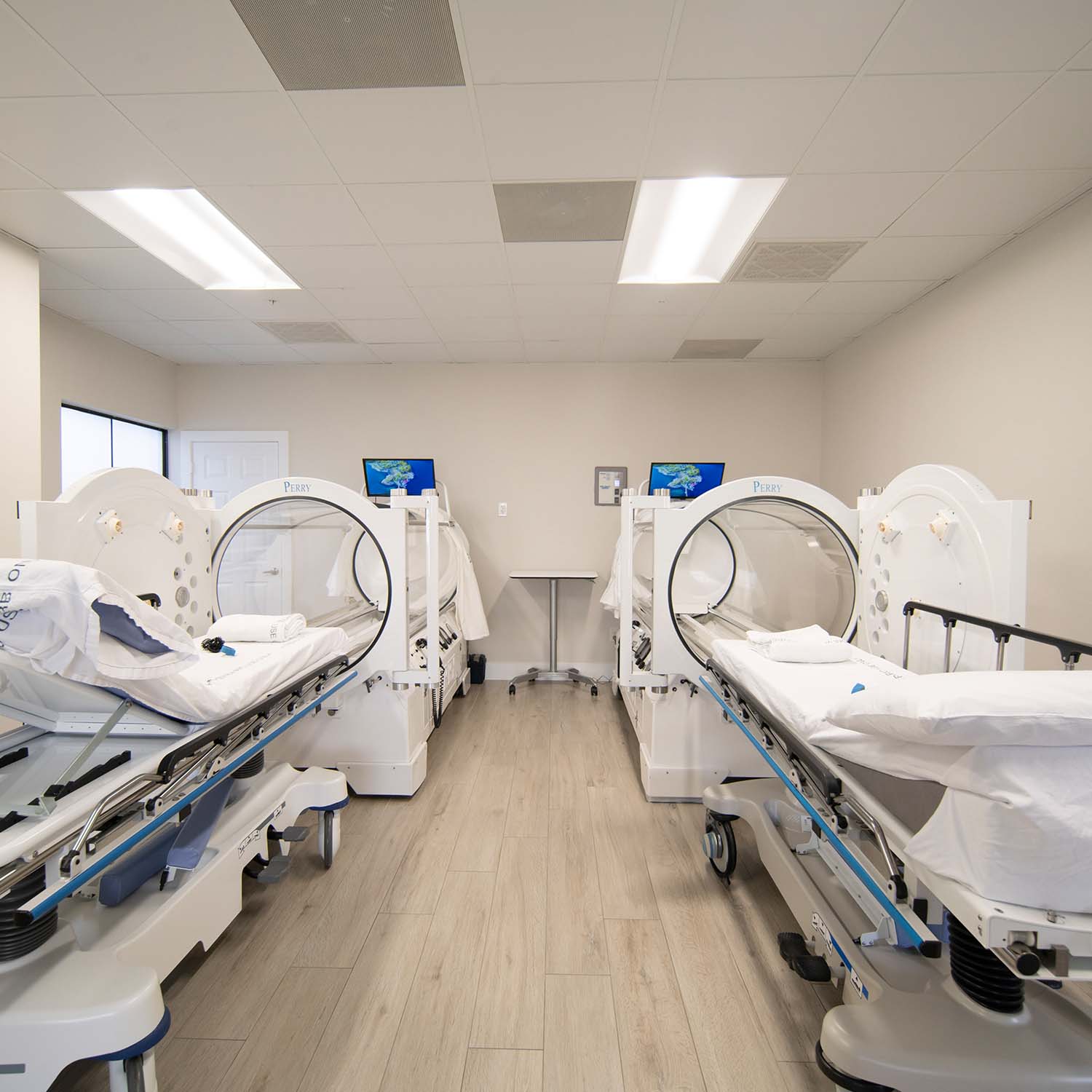 Hyperbaric chamber oxygen therapy involves breathing in pure oxygen in a pressurized area.